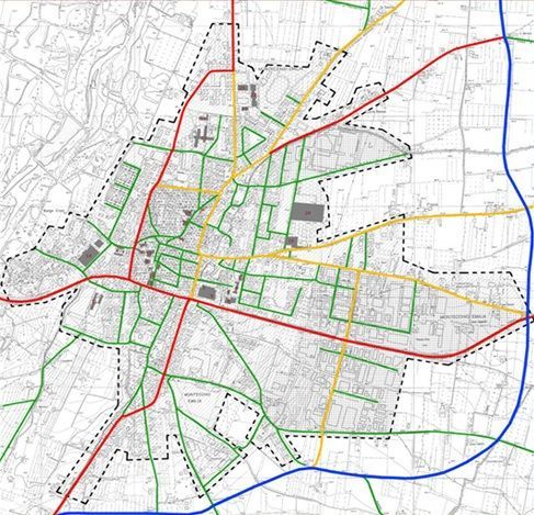 Montecchio era ed è interessata da un elevato traffico di attraversamento e, per dar sollievo agli ambiti residenziali ed ai poli attrattori pubblici e privati, si è predisposto il Piano Urbano del Traffico partendo da una nuova gerarchia stradale, sino alla progettazione delle opere di ingegneria stradale necessarie alla moderazione del traffico.